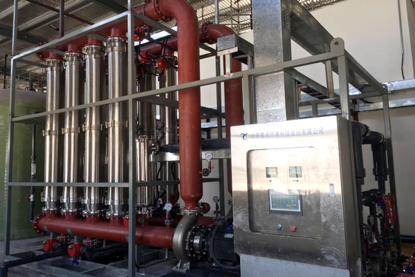 山東泰禾環(huán)??萍脊煞萦邢薰狙h(huán)水廢水回用處理系統(tǒng)包括一體化高速反應(yīng)池,壓濾機(jī)去硬度和固體雜質(zhì),然后依次連接的自清洗過濾器、陶瓷膜超濾組件和RO反滲透膜組件,該循環(huán)冷卻水廢水回用系統(tǒng)的脫鹽率大大提高,作為循環(huán)冷卻水系統(tǒng)補(bǔ)給水循環(huán)使用,有效優(yōu)化循環(huán)冷卻水水質(zhì),降低循環(huán)冷卻水的鹽分濃度。