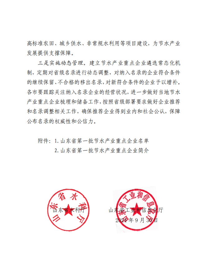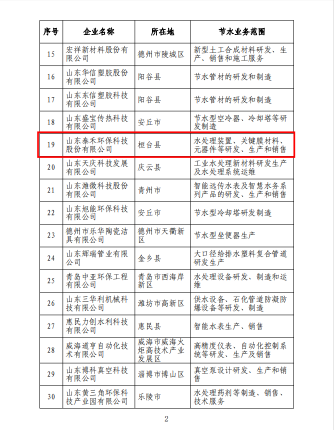 祝賀山東泰禾成功入選“山東省第一批節(jié)水產業(yè)重點企業(yè)名錄”